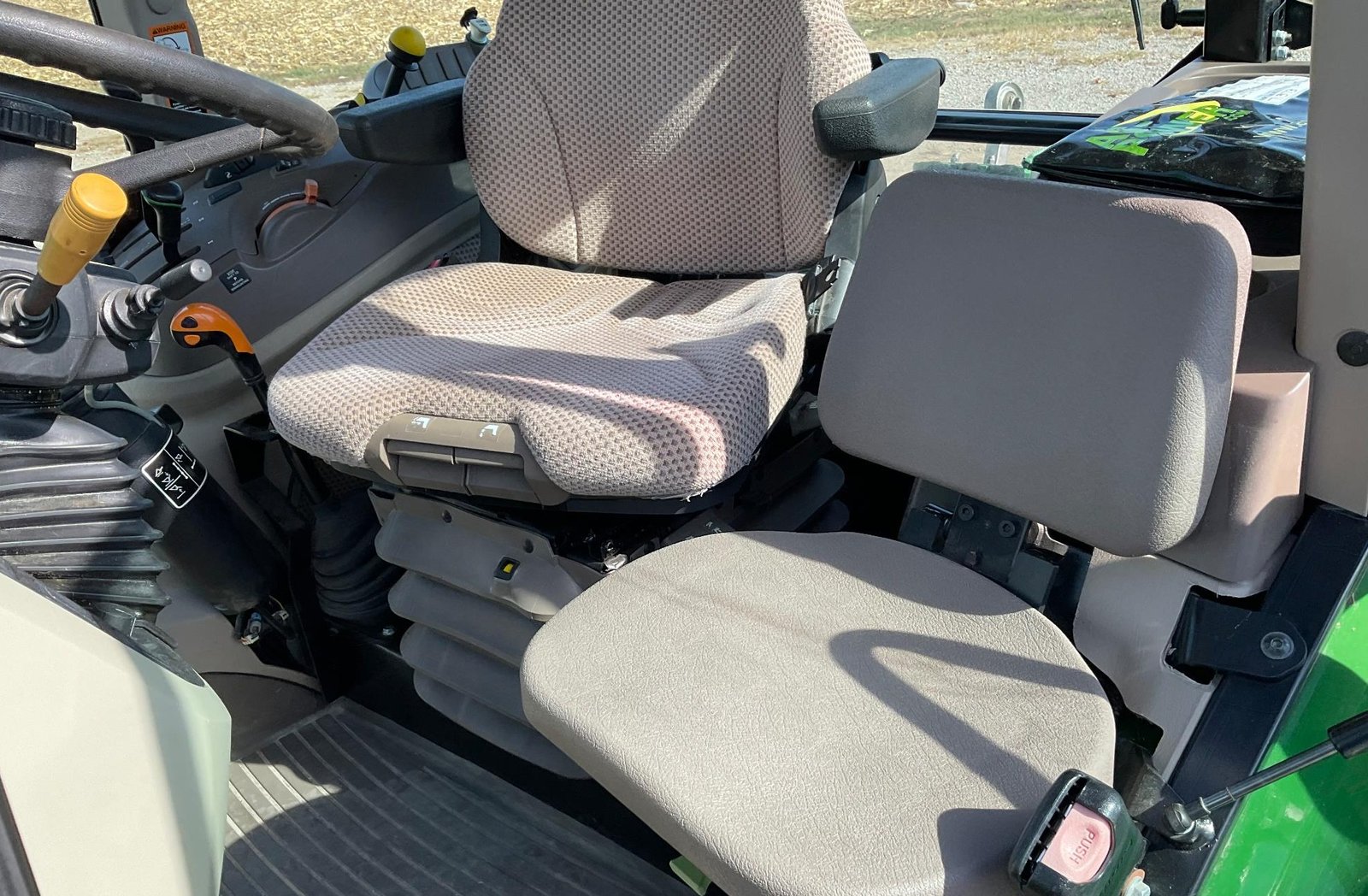 This 2015 John Deere 5075M MFWD tractor has 459 hours showing and is powered by a reliable John Deere 4-cylinder engine. It features 8 forward and 2 reverse speeds with an LH reverser, 540/540E rear PTO, differential lock, and a 3-point hitch with rear fender controls. Equipped with three hydraulic outlets, this tractor is ready for a variety of jobs. It comes with a John Deere H260 quick-attach loader, joystick control, single-point hydraulic hookup, and a 7’ quick-attach bucket. Additional features include MFWD, 380/70/24 front tires, 480/70/34 rear tires, standard cloth seat, sunroof, double doors, and the operator’s manual—clean, well-equipped, and ready to work.