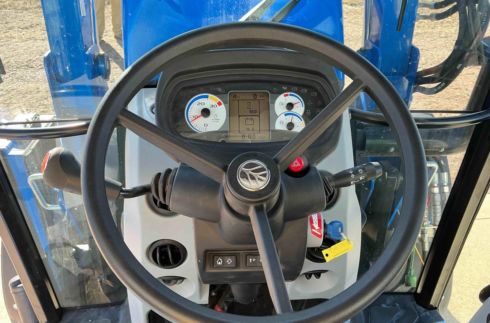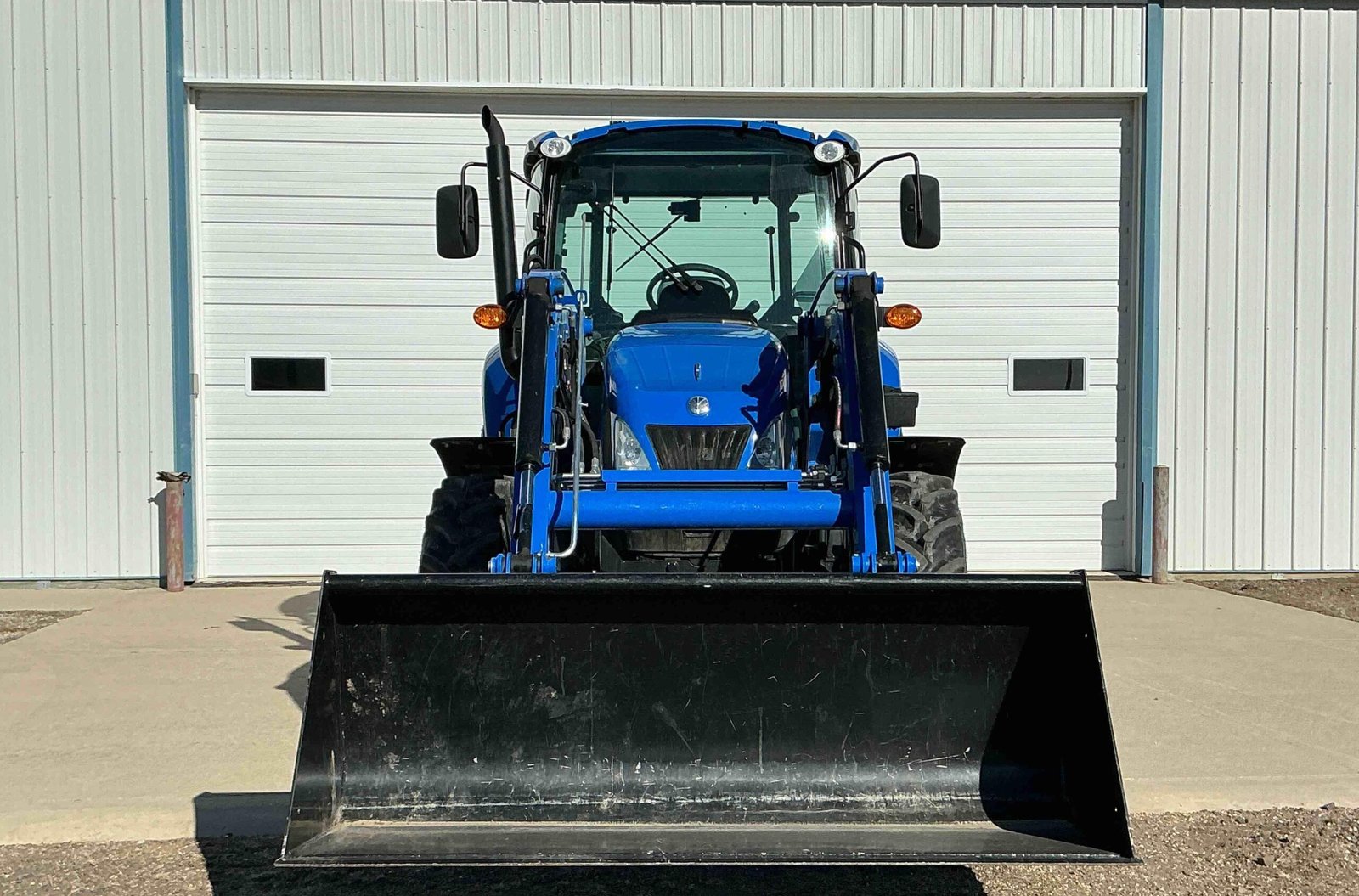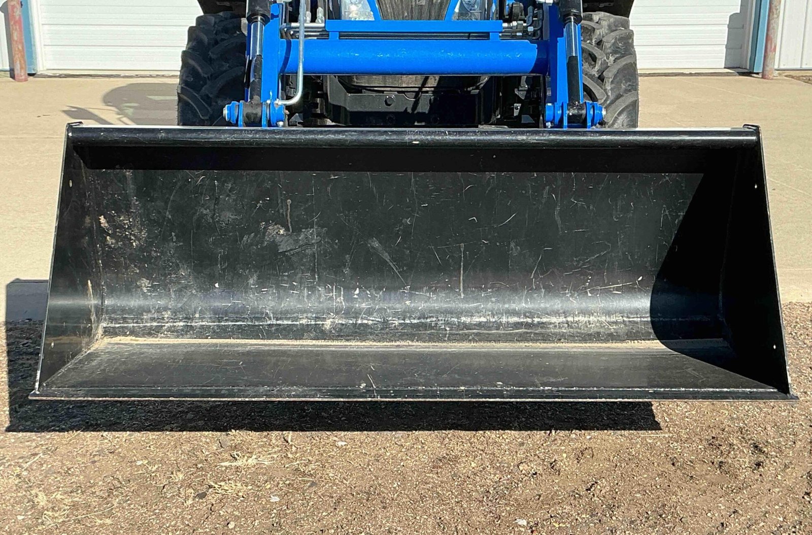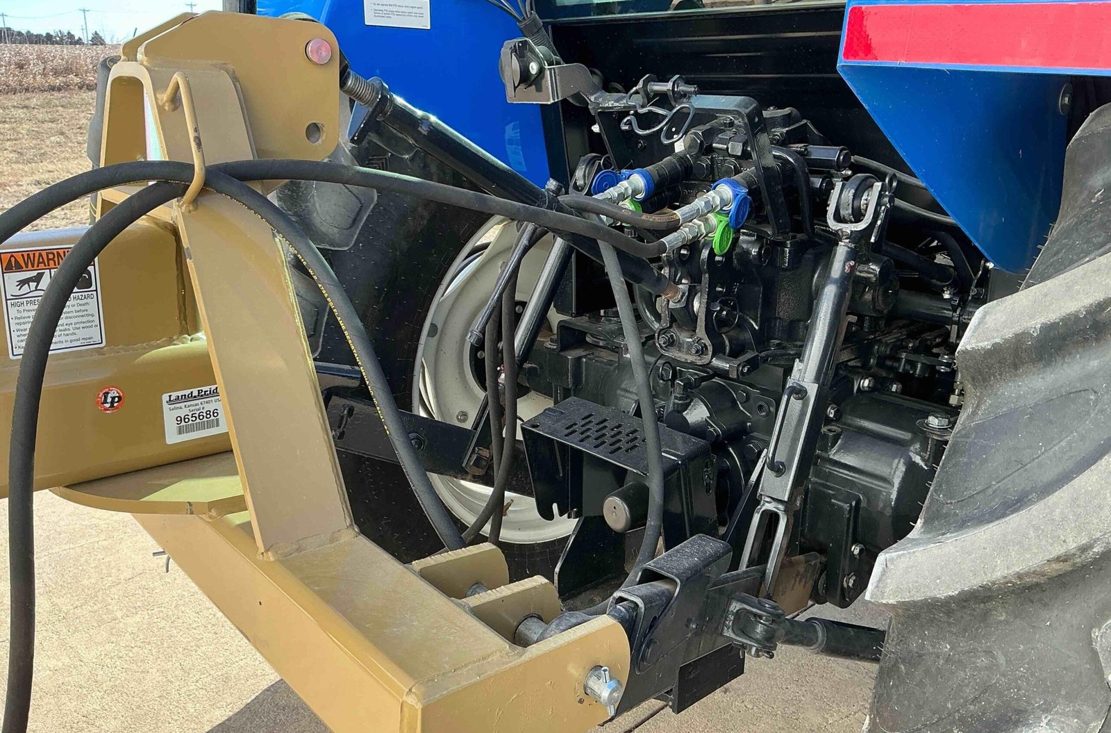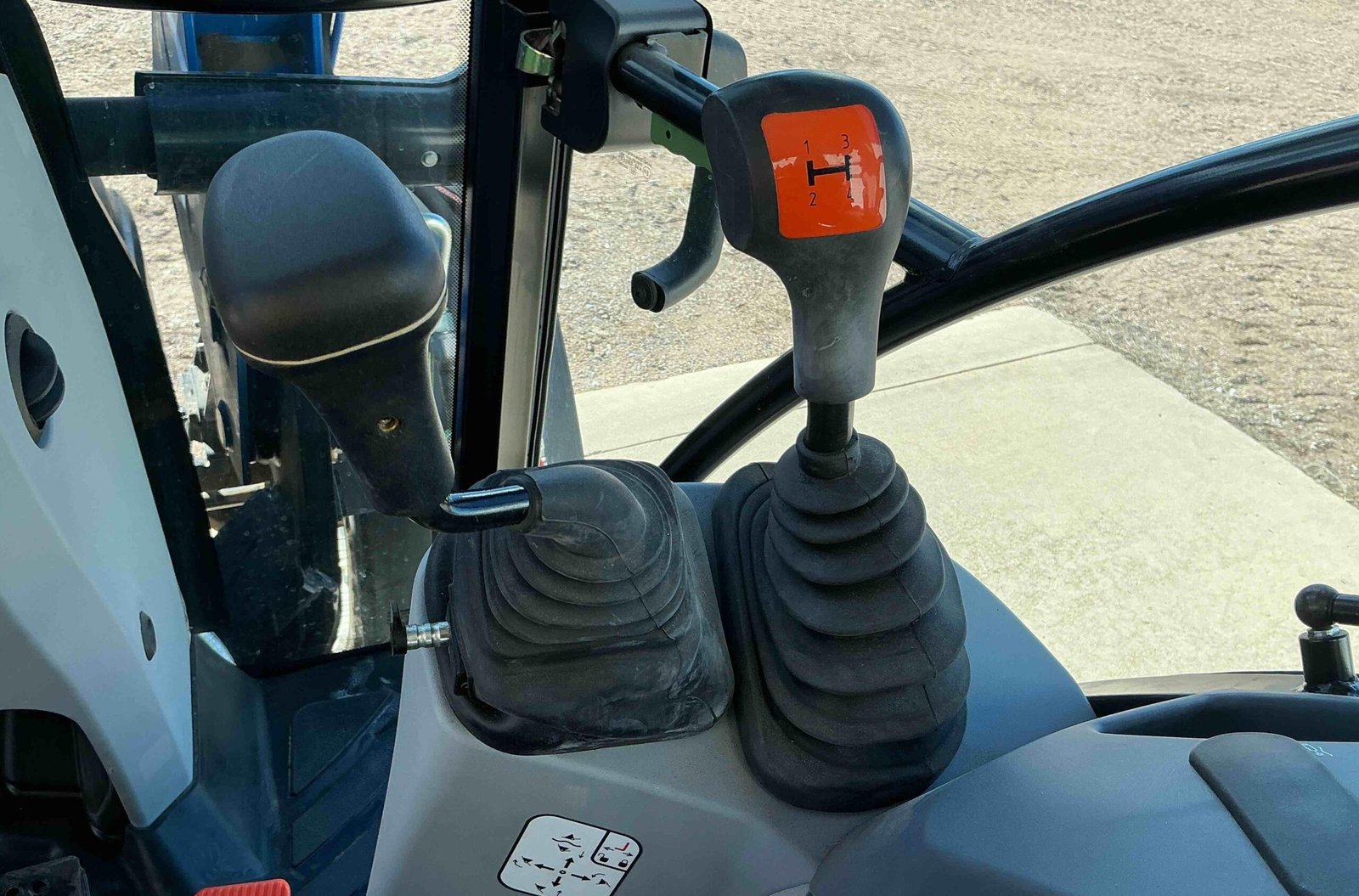 This 2015 New Holland PowerStar T4.75 MFWD tractor has just 93 hours and is powered by a 74 HP FPT F5C 3.4L 4-cylinder turbocharged diesel engine with no DEF. It features a 12-speed partially synchronized mechanical shuttle transmission with creeper gear and a fully independent 540 RPM PTO. Equipped with a New Holland 655TL front loader with a 72″ bucket and a Land Pride RBT3584 3-way hydraulic rear blade with 84″ working width, this tractor is ready for a wide range of jobs. Additional highlights include two rear hydraulic remotes, 3-point hitch with center link, enclosed cab with heat and A/C, radio, buddy seat, sunroof, and 280/85R24 front and 420/85R30 rear tires.