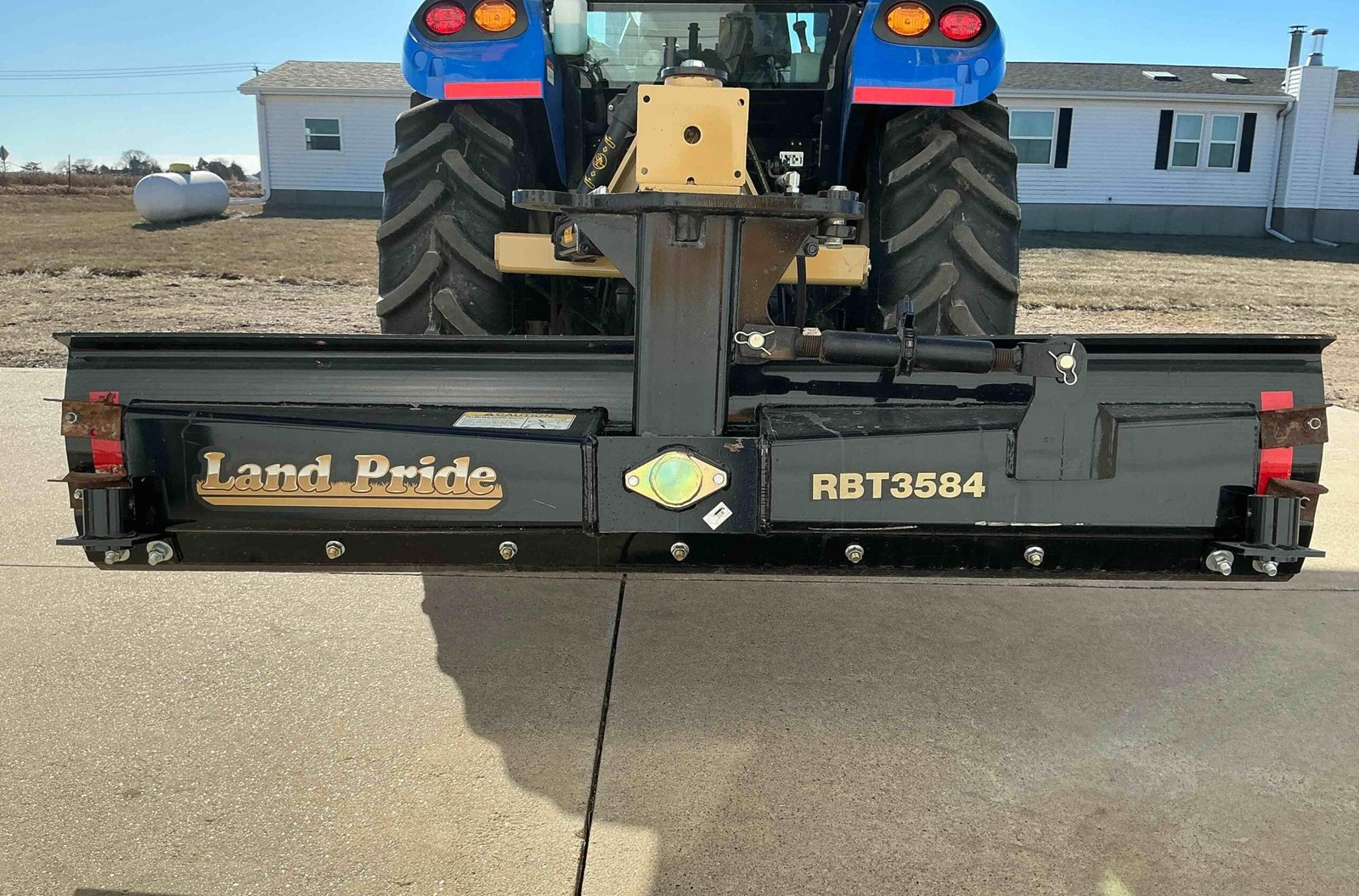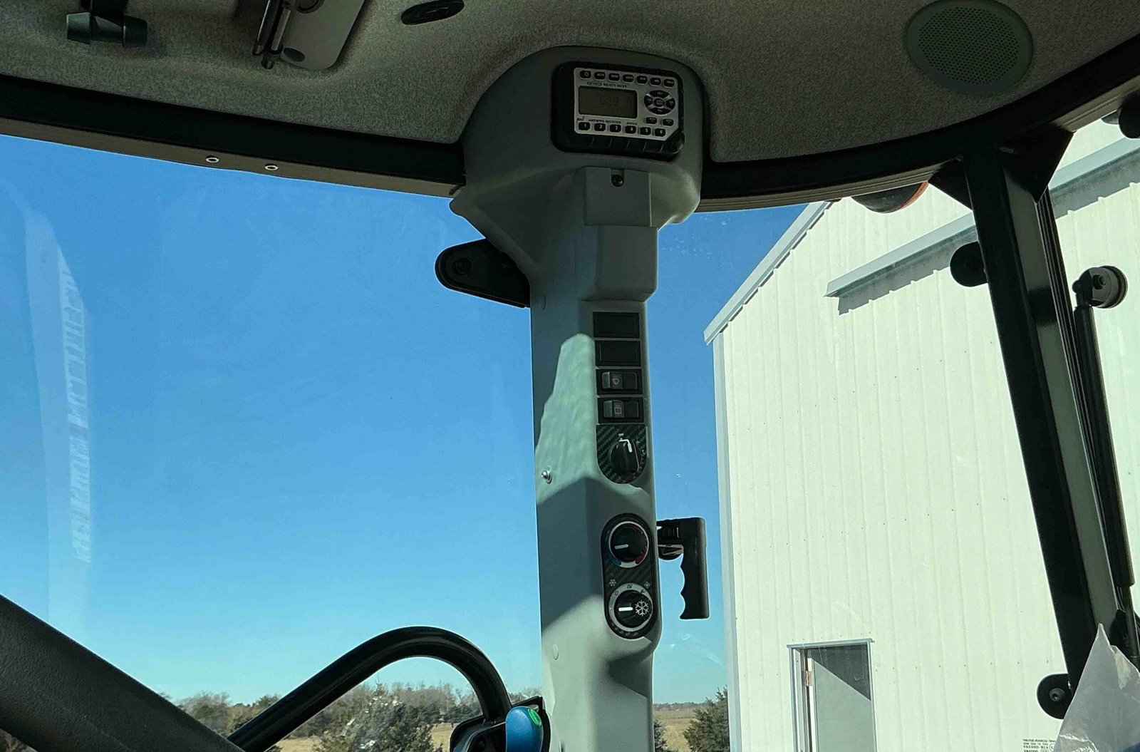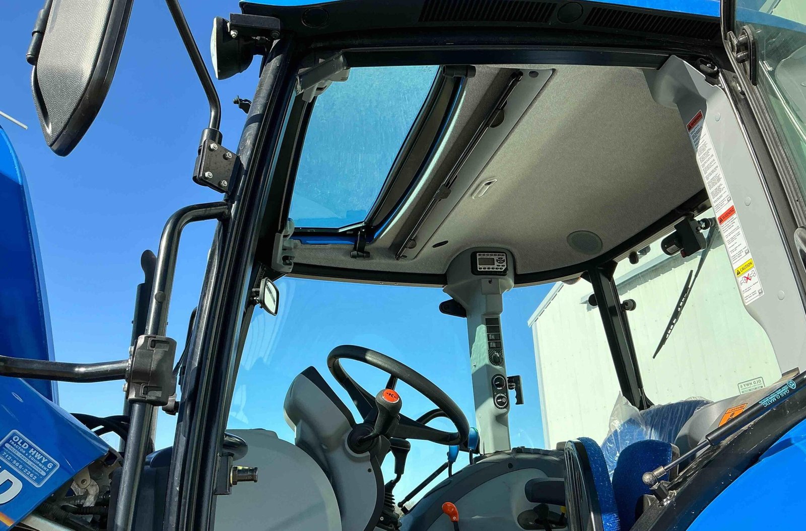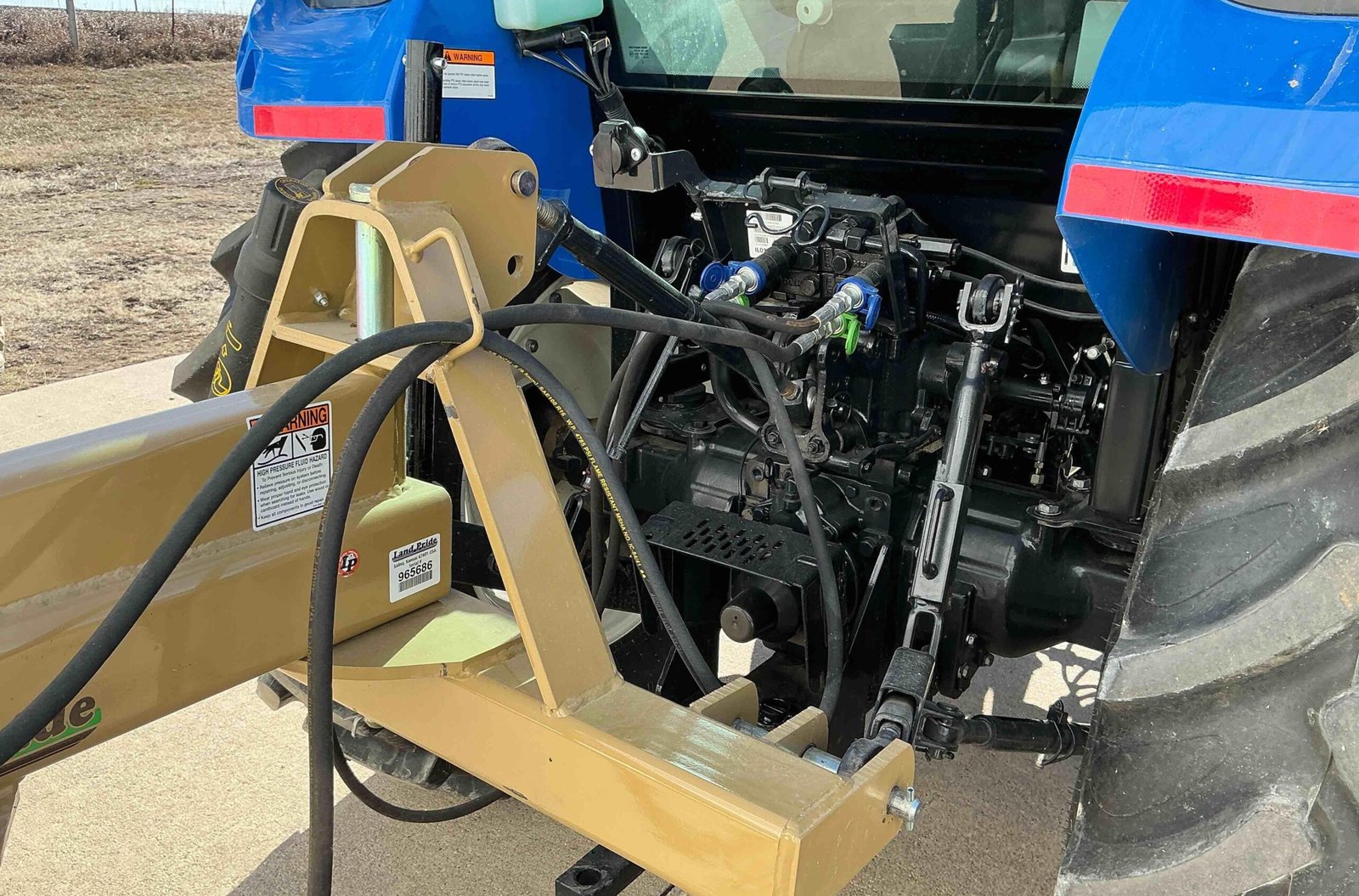 This 2015 New Holland PowerStar T4.75 MFWD tractor has just 93 hours and is powered by a 74 HP FPT F5C 3.4L 4-cylinder turbocharged diesel engine with no DEF. It features a 12-speed partially synchronized mechanical shuttle transmission with creeper gear and a fully independent 540 RPM PTO. Equipped with a New Holland 655TL front loader with a 72″ bucket and a Land Pride RBT3584 3-way hydraulic rear blade with 84″ working width, this tractor is ready for a wide range of jobs. Additional highlights include two rear hydraulic remotes, 3-point hitch with center link, enclosed cab with heat and A/C, radio, buddy seat, sunroof, and 280/85R24 front and 420/85R30 rear tires.