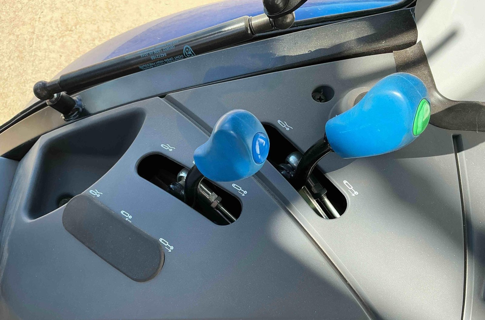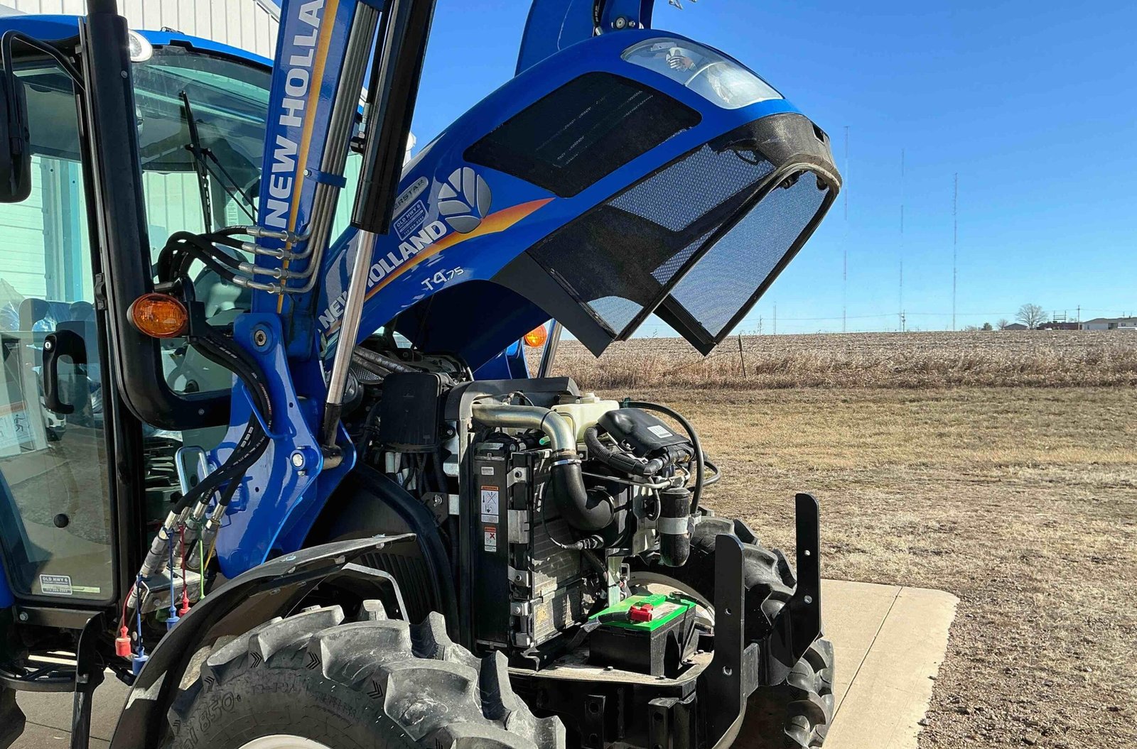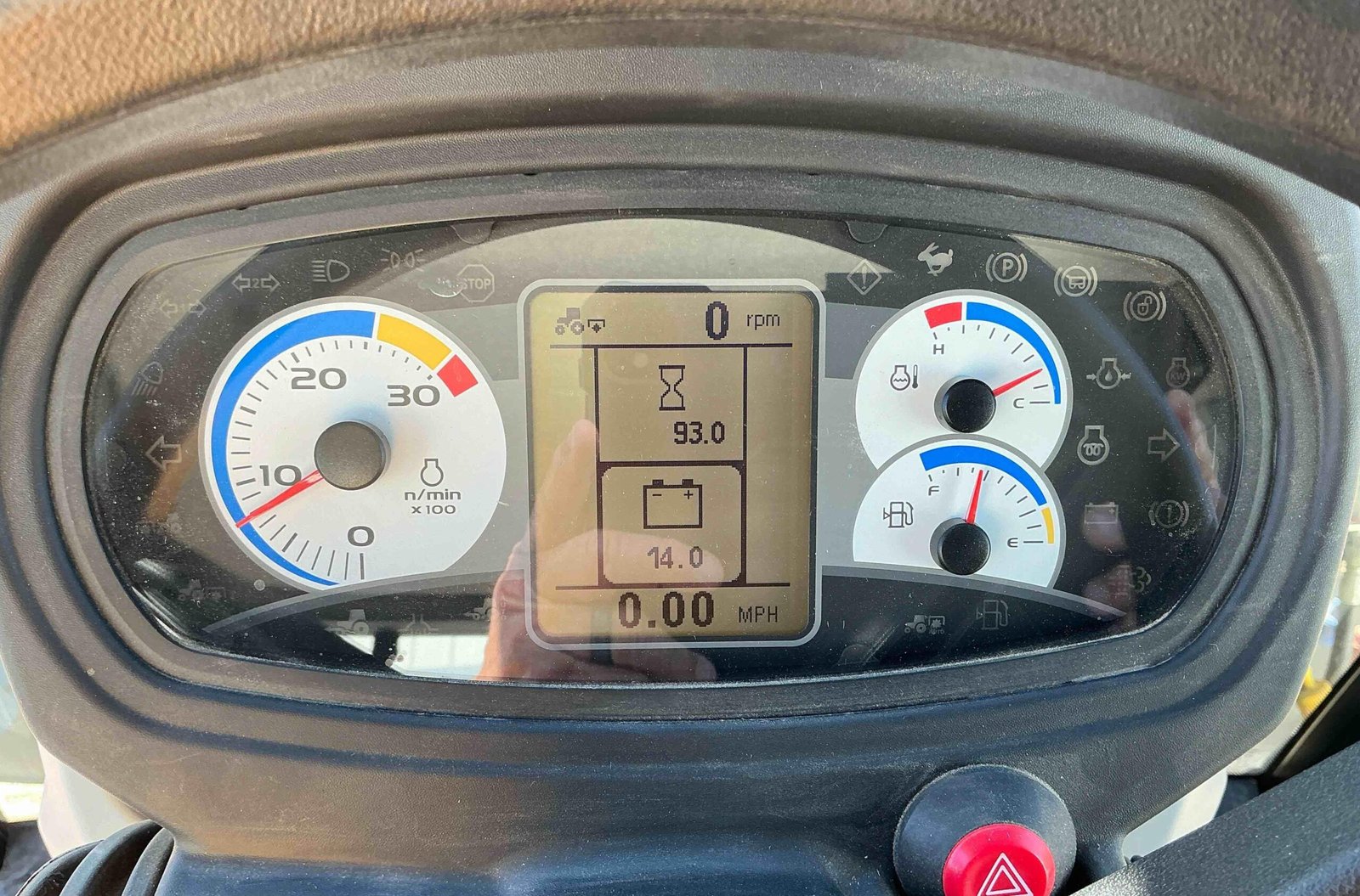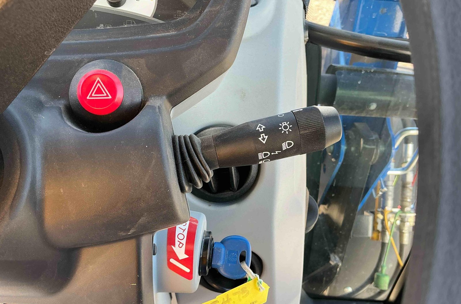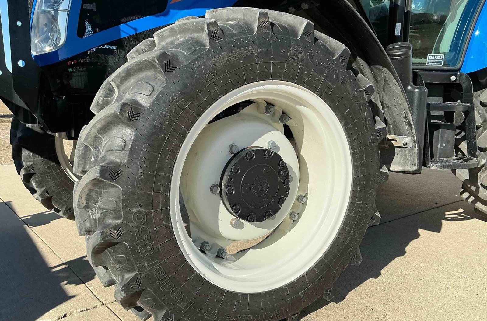 This 2015 New Holland PowerStar T4.75 MFWD tractor has just 93 hours and is powered by a 74 HP FPT F5C 3.4L 4-cylinder turbocharged diesel engine with no DEF. It features a 12-speed partially synchronized mechanical shuttle transmission with creeper gear and a fully independent 540 RPM PTO. Equipped with a New Holland 655TL front loader with a 72″ bucket and a Land Pride RBT3584 3-way hydraulic rear blade with 84″ working width, this tractor is ready for a wide range of jobs. Additional highlights include two rear hydraulic remotes, 3-point hitch with center link, enclosed cab with heat and A/C, radio, buddy seat, sunroof, and 280/85R24 front and 420/85R30 rear tires.