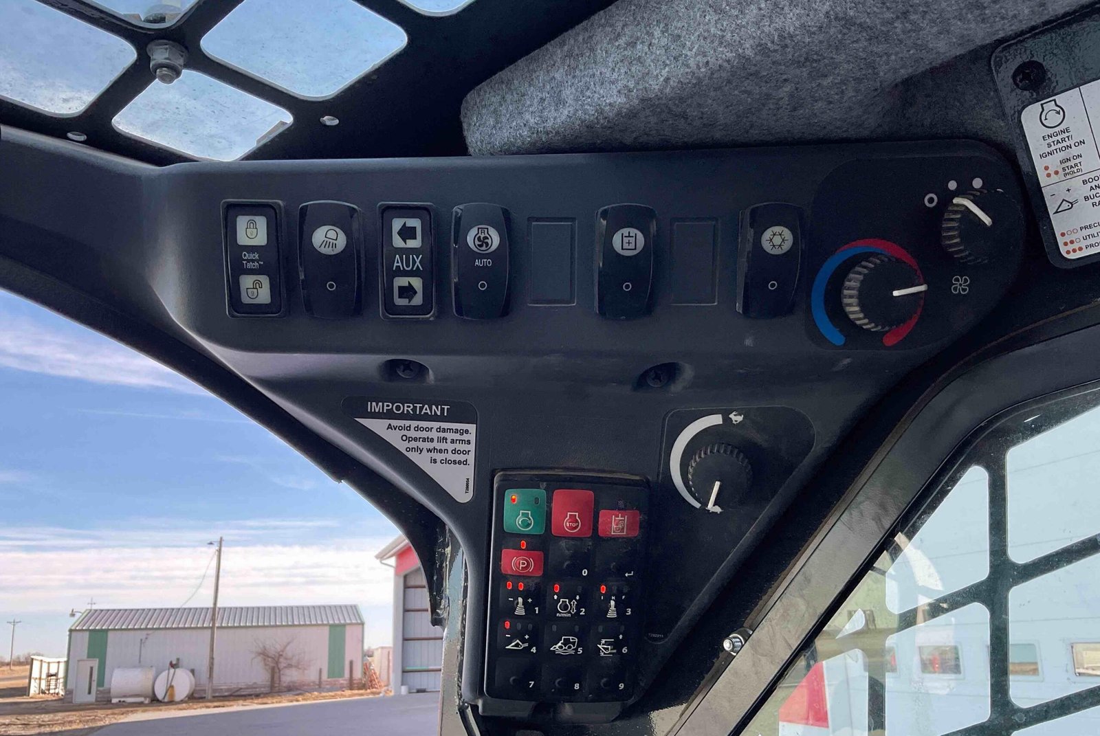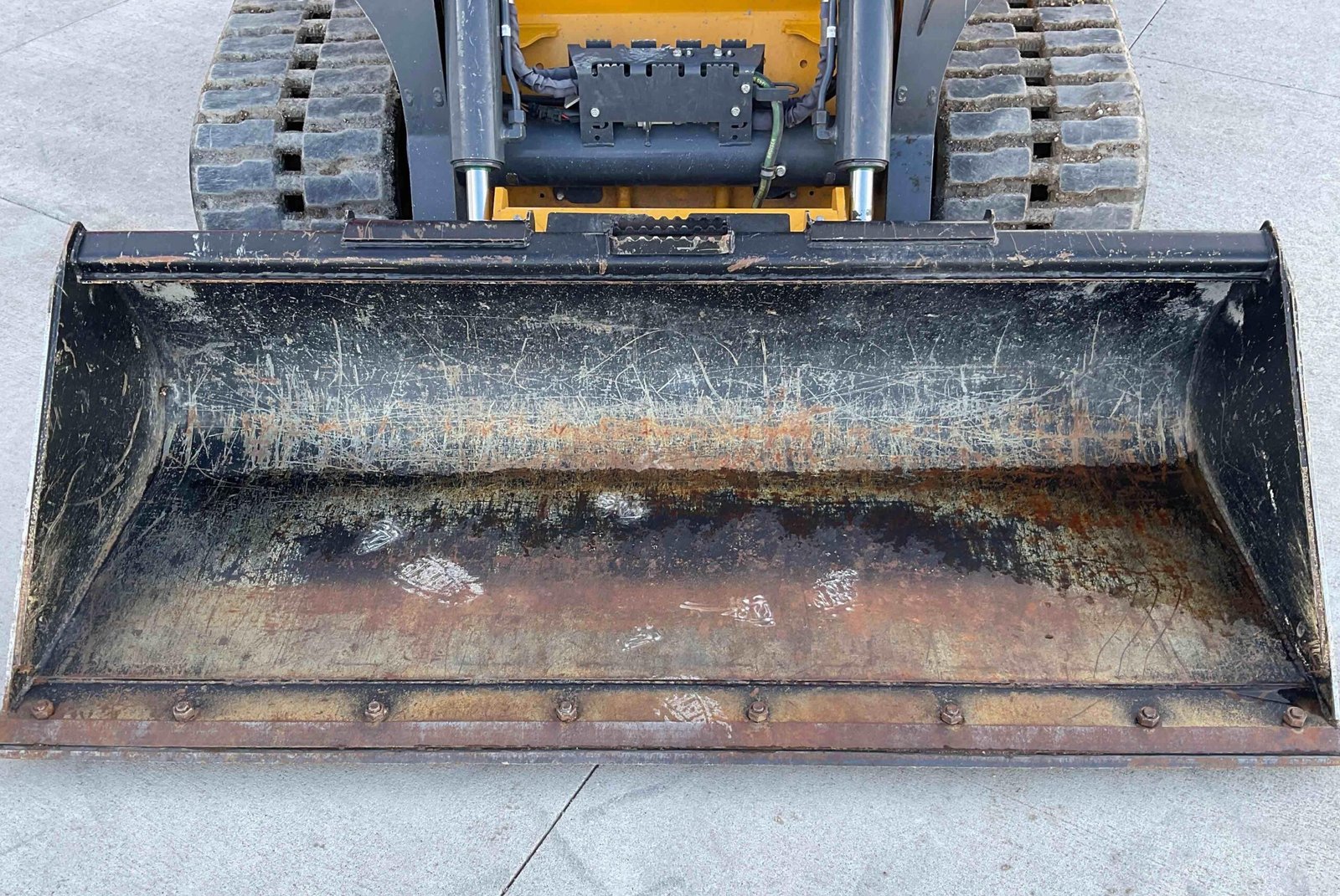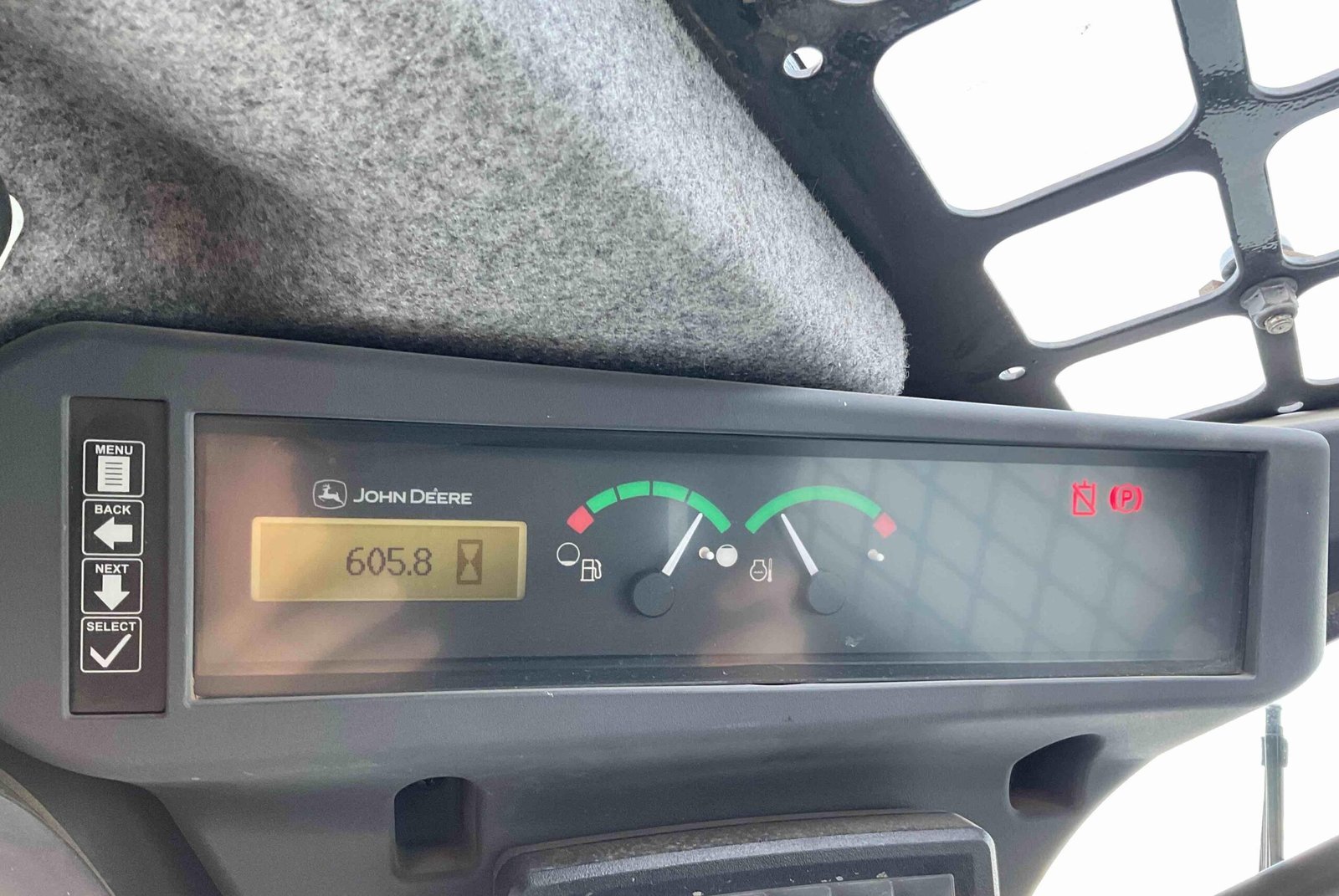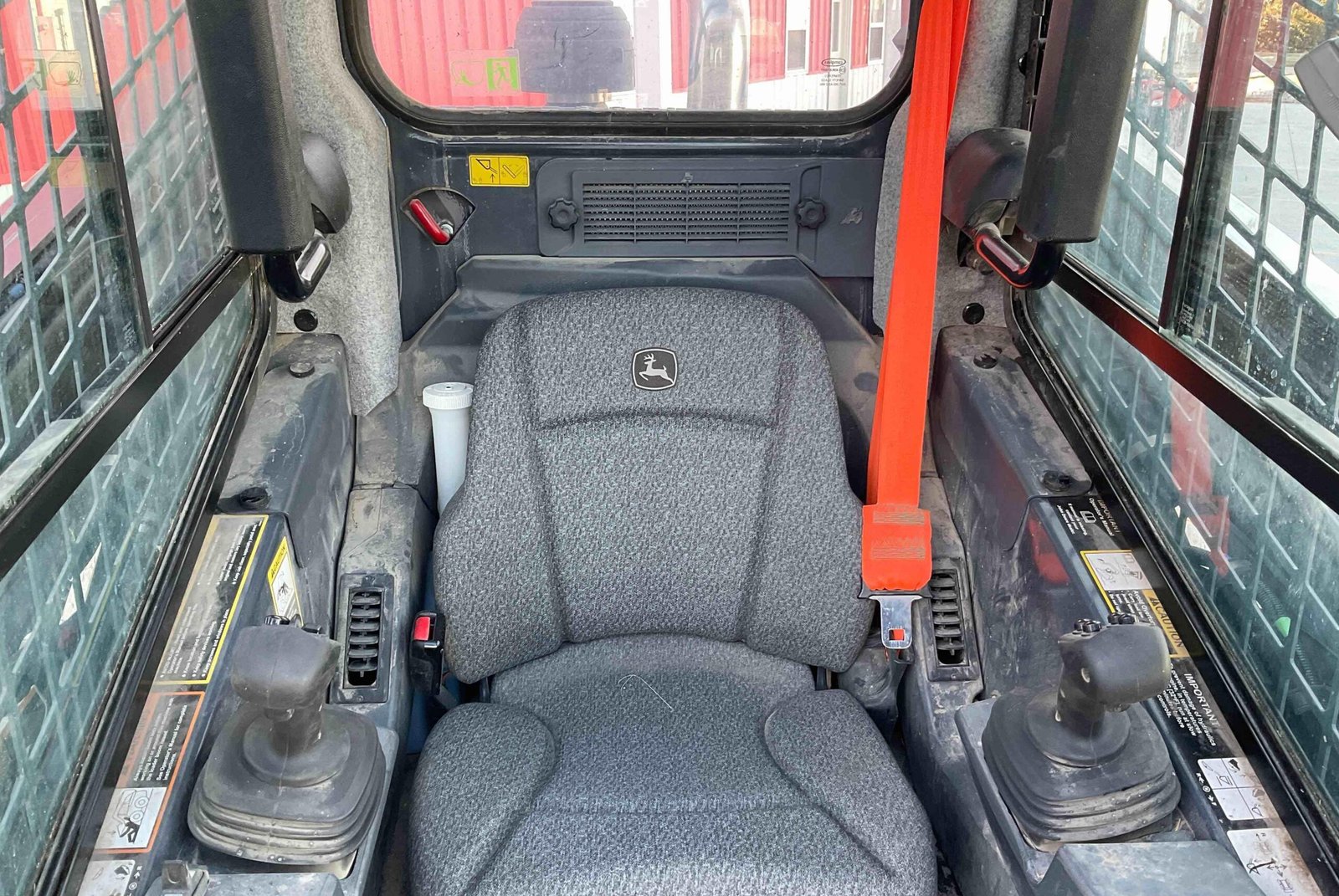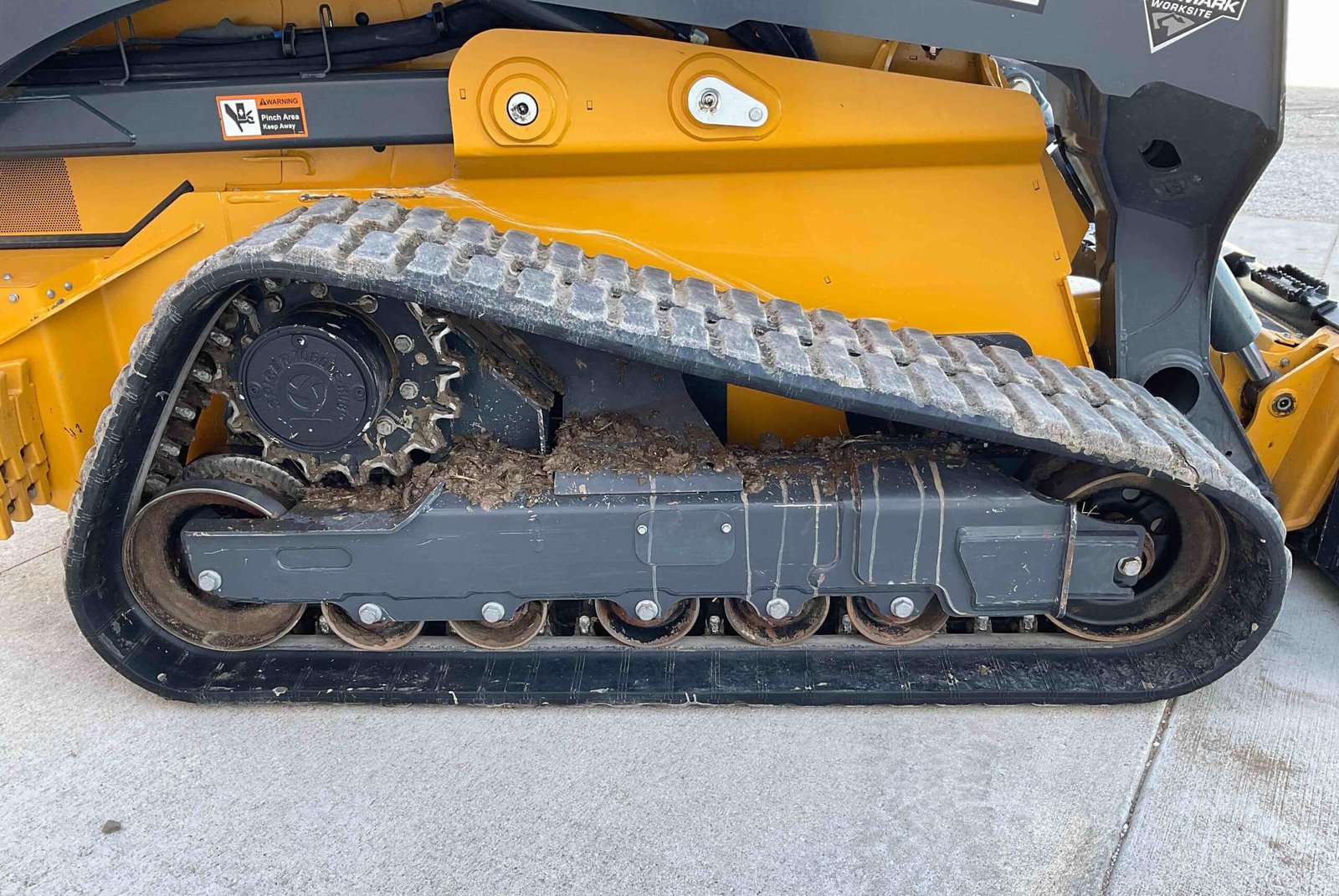 2022 John Deere 333G Compact Track Loader, 605 hours, high-flow hydraulics, cab w/ heat & A/C, air-ride seat, rear camera, Yanmar turbo diesel, 2-speed, ISO/H controls, 84″ bucket w/ bolt-on edge, 18″ tracks, counterweights.